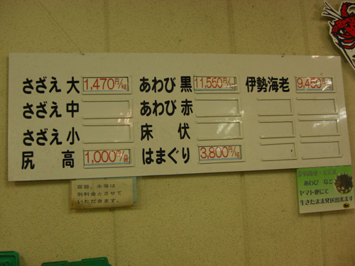 毎日変動する魚介類の値段、でも都会の値段に比べれば・・・