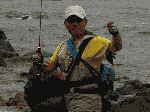 下写真は5月8日に黒ソイを見事に岩間から釣り上げたお父さんです。